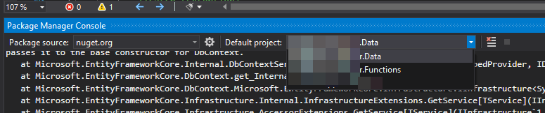 This step presumes you're running the commandlet from the Package Manager Console. It has a dropdown for the Default project