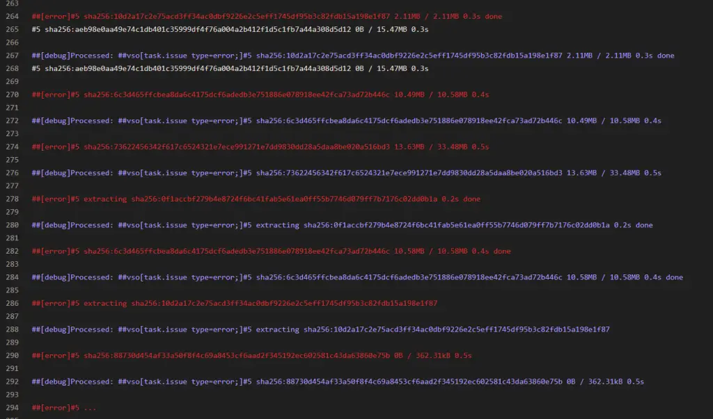 Azure DevOps STDERR output to STDIO causes the logs to show a lot of red. "Build images" was successful. With plenty of red lines in the log. But who cares, right?