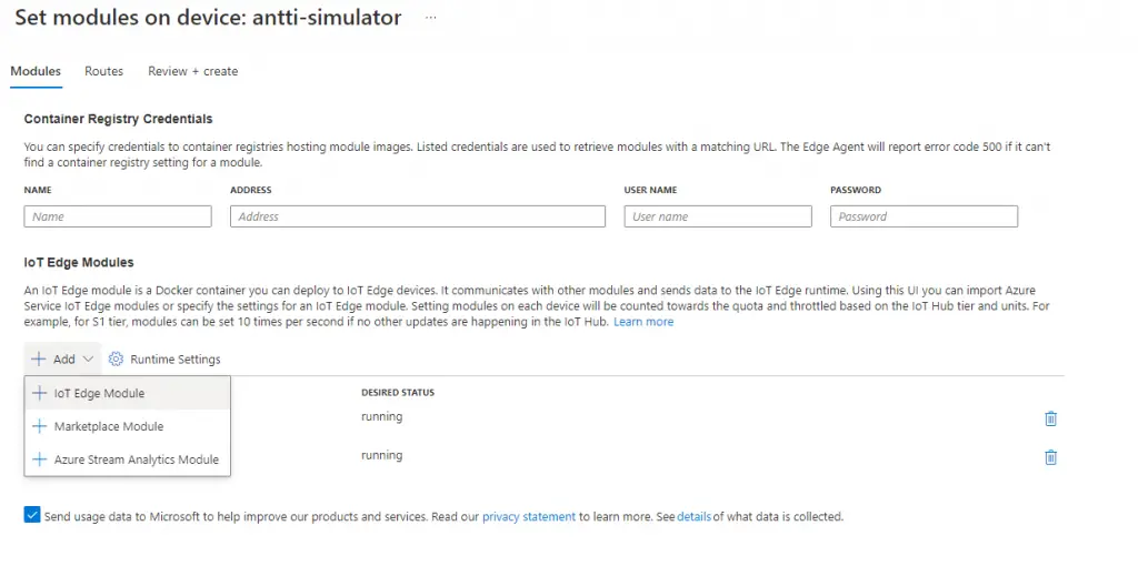 I know, I know - it's getting convoluted! But you can also add the new modules from the Azure Portal UI, by using "Set Modules".