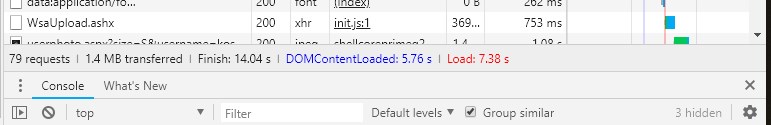 A request to WsaUpload.ashx causing a delay of over 700ms - that's over 10% of the whole page load time!