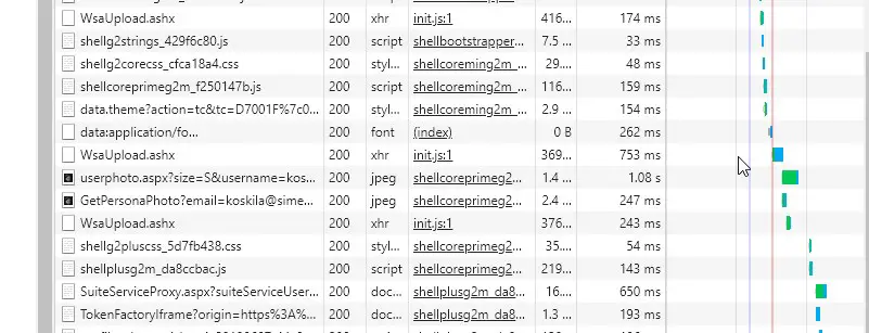 When opening a classic page in SharePoint - pretty much any page - you can see from the Network -tab of your browser, that there are a bunch of requests to WsaUpload.ashx. There are typically 1-4 of them, and you can see them all over the place.