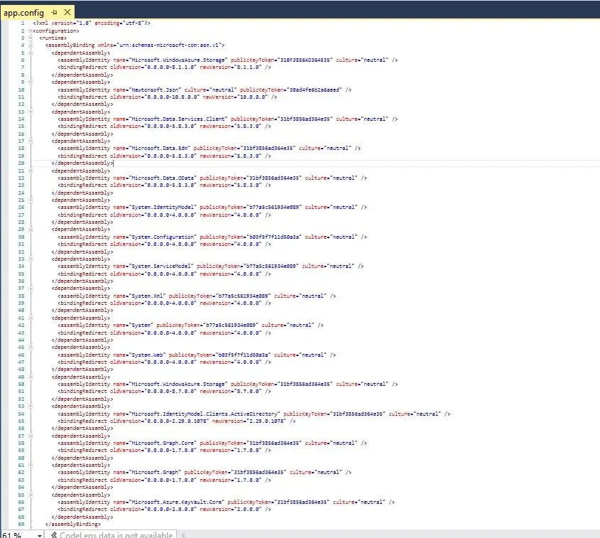 <assemblyIdentity name="Microsoft.IdentityModel.Clients.ActiveDirectory" publicKeyToken="31bf3856ad364e35" culture="neutral" />