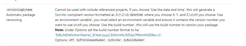 On the other hand, "ByPrereleaseNumber" would've been great, but you actually can't get rid of the date&time in the version - which was FRUSTRATING. "ByEnvVar" wasn't too bad since you could configure a pipeline variable to do whatever you want, but making that into a semver-compatible incremental number... Well, let's just say there's no apparent way to do that. You'd have to always change the value of the variable per build, or write custom PowerShell logic in your build to change the value during the execution.