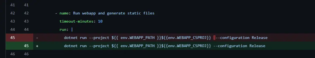 dotnet run --project ${{ env.WEBAPP_PATH }}${{env.WEBAPP_CSPROJ}} --configuration Release