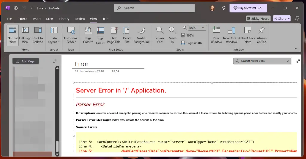 So to loop this rant back to the topic, my OneNote became this weird version, probably meant for touch screens and pen users. It doesn't really have any buttons or toolbars or anything like that - it's just this weird, empty window.
