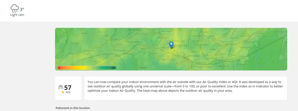 As an interesting side note, Airthings had decided that I live with them - in Oslo. Cute, but I don't think they should show false data by default :)