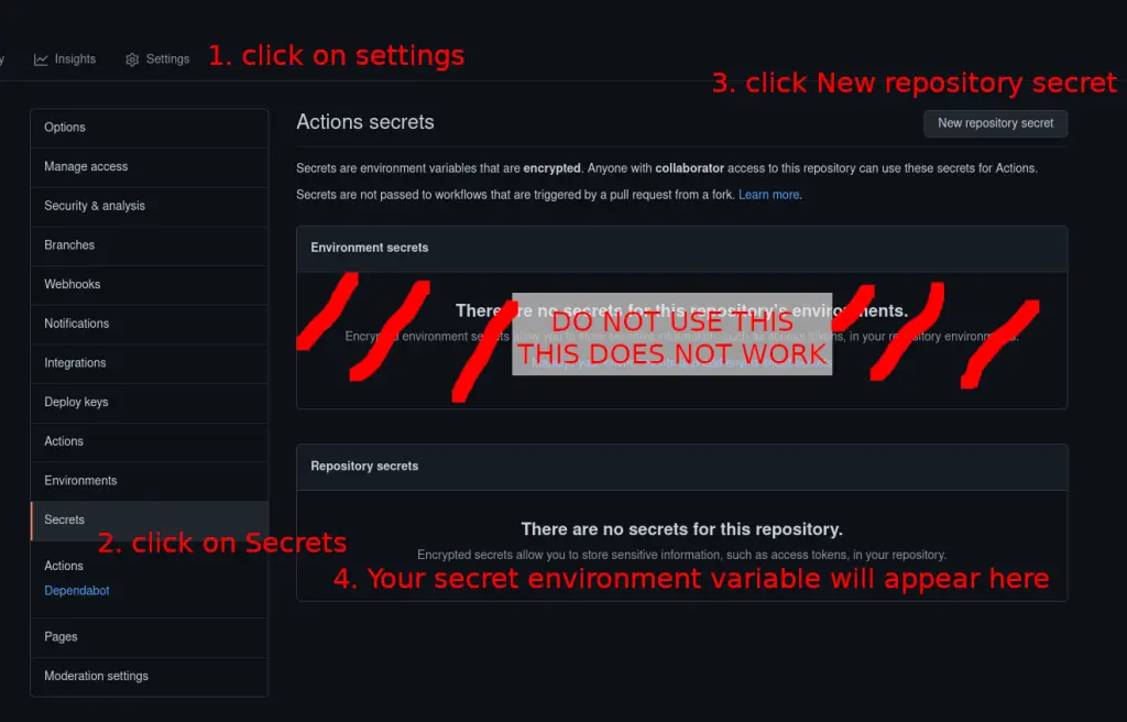 Got this picture from a GitHub thread discussing Environment Secrets being broken, but I think it's originally from StackOverflow. No matter - it's misleading and incorrect in any case.