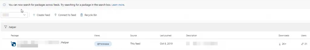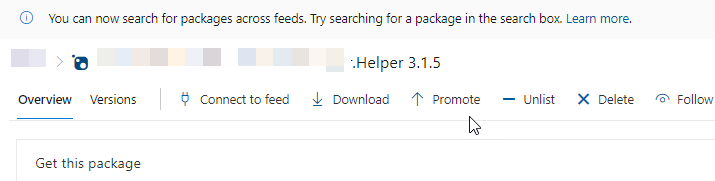 However, it might take any number of minutes for your package to show up in the UI - the longest I've seen has been around 30 minutes. And even longer for the package to show up in the NuGet feed (especially if you can't even promote your package since you can't access it!)