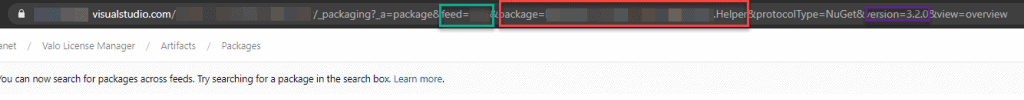 Feed and package names are good - keep them. But you need to change the version number (shown in purple)https://contoso.visualstudio.com/Contoso Common Code Packages/_packaging?_a=package&feed=CCCP&package=Contoso.Commons.Packaging.Helper&protocolType=NuGet&version=3.2.0&view=overview