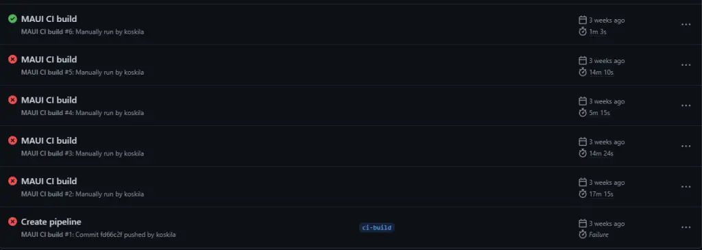 MAUI development is still a little bit finicky - any Windows Update, Visual Studio update or .NET update might break your development environment. But it doesn't happen that often, and there are always workarounds available... But it means that building a MAUI app, even locally, can be a little bit laborious.