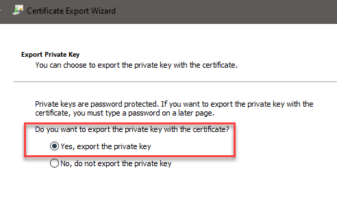 You'll want the private key to be in the exported file, so please do select "yes" here.