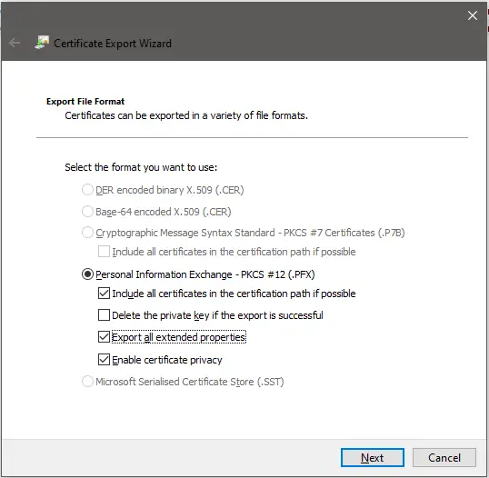 ... and if you want to export your private key from your .pfx-file, here's how to do it: