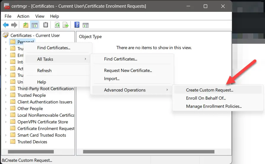 You can do this with DigiCertUtil.exe, or by selecting a certificate store > All Tasks > Advanced Operations > Create Custom Request.