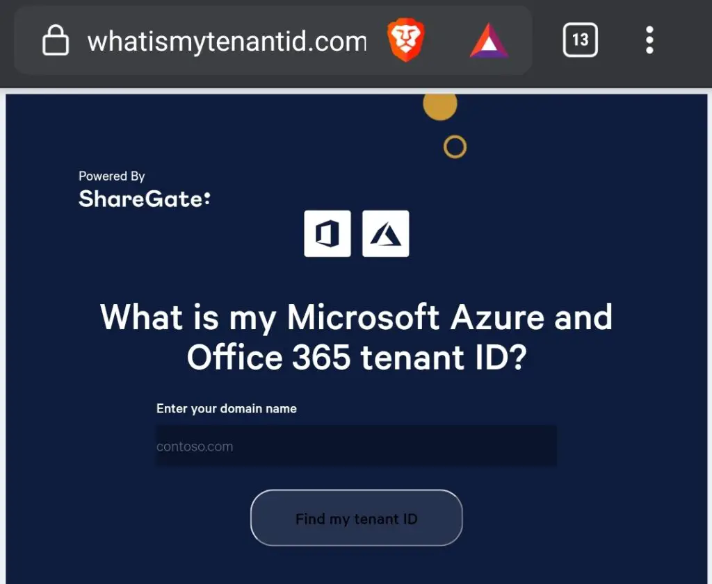 Let ShareGate do their magic and find your tenant/directory id for you!