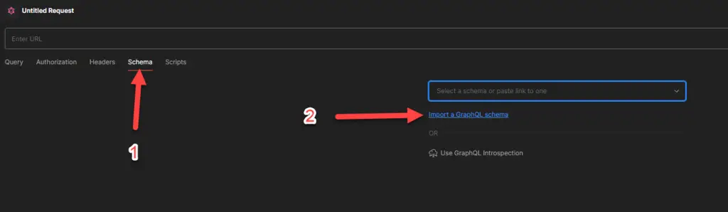 And navigating to GraphQL > Schema > "Import a GraphQL schema", and paste the URL there:
