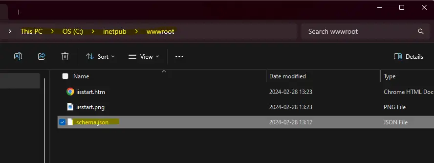 Note, however, that IIS will not let anyone access a .graphql file by default, and instead you need to rename the file to something that can be accessed online. .json is a decent option.