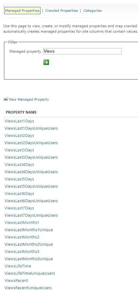 We're talking about all the managed properties, that SharePoint populates for view counts. There really is a bunch of them, and while they're not very reliable, they might still be useful for fetching the most popular stuff or comparing usage/views of certain items over time.