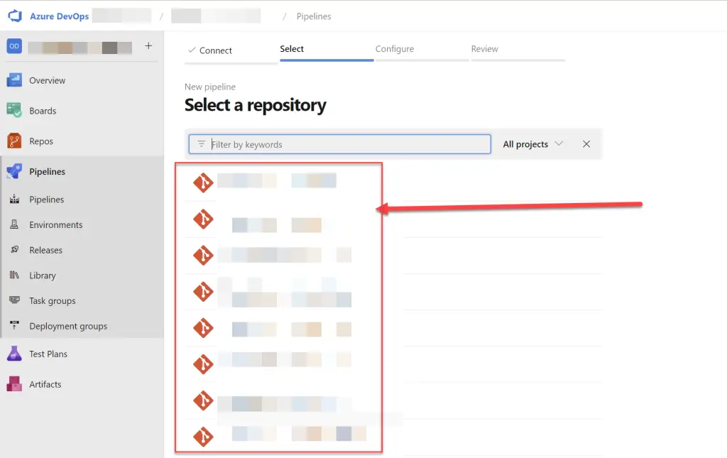As a reminder, when you're creating a new pipeline, you select a repository on the second step. It looks somewhat like this: