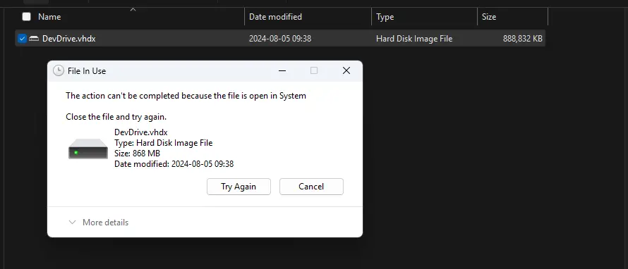This article explains how to remove a virtual Dev Drive (DevDrive.vhdx), after it's stuck on your machine.