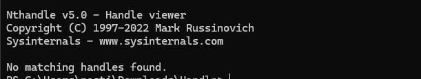 Sysinternals Handle viewer is a great tool by Mark Russinovich - is a powerful utility that allows you to view and manage open file handles on a Windows system. I suspect it might be using the same implementation under the hood with the File Locksmith - but I gave it a go anyway.