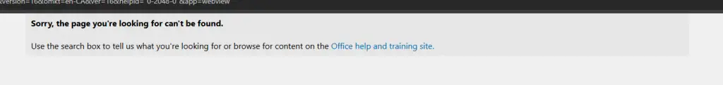 https://support.office.com/en-CA/client/results?&ns=OCSAC2RBootstrapper&version=16&omkt=en-CA&ver=16&helpid=%220-2048-0%22&app=webview