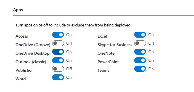In the online tool - called "Office Customization Tool" - you can remove apps like "Skype for Business".