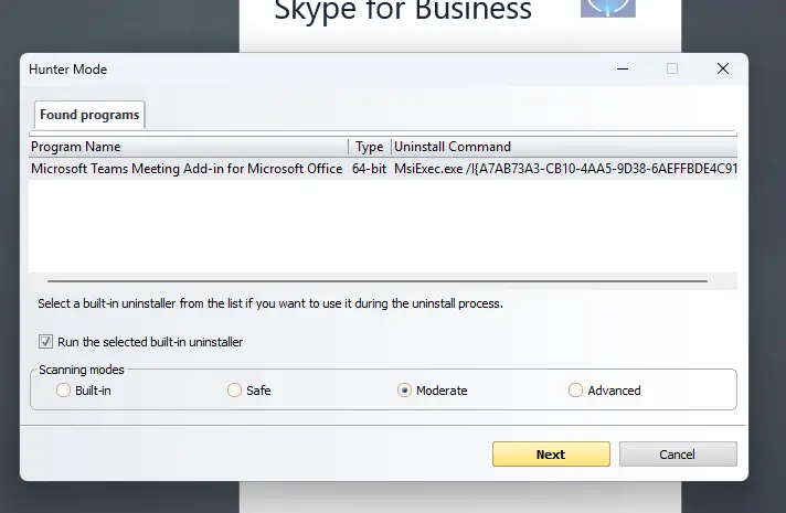 Revo Uninstaller helpfully recognized the Skype for Business client - lync.exe - as "Microsoft Teams Meeting Add-in for Microsoft Office".