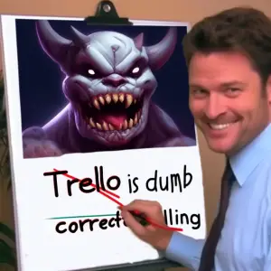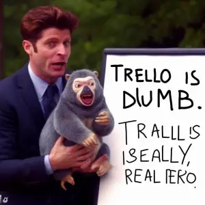The main picture of this article is Microsoft's Copilot for Bing's rendition of Clippy saying "Trello is dumb". I'm not trying to incite a clan war or anything, trust me, but also this was a hilarious disappointment.