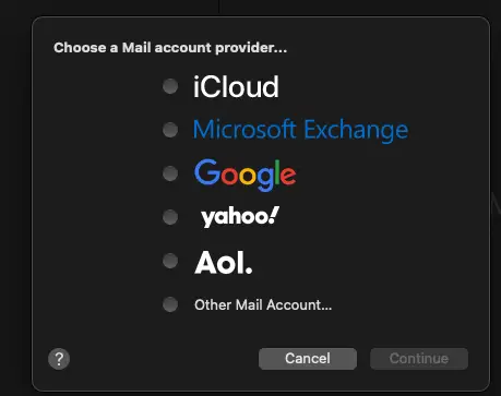 But if you're a sensible human being, at this point, you have probably never opened Mail (as you shouldn't), so it'll ask you to add an account.