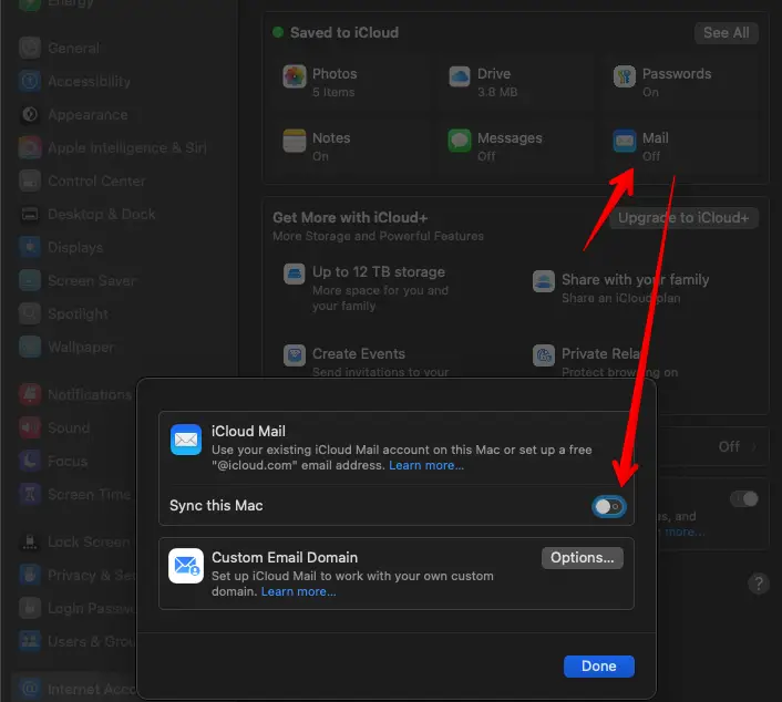 3. Enable synchronizing iCloud Mail