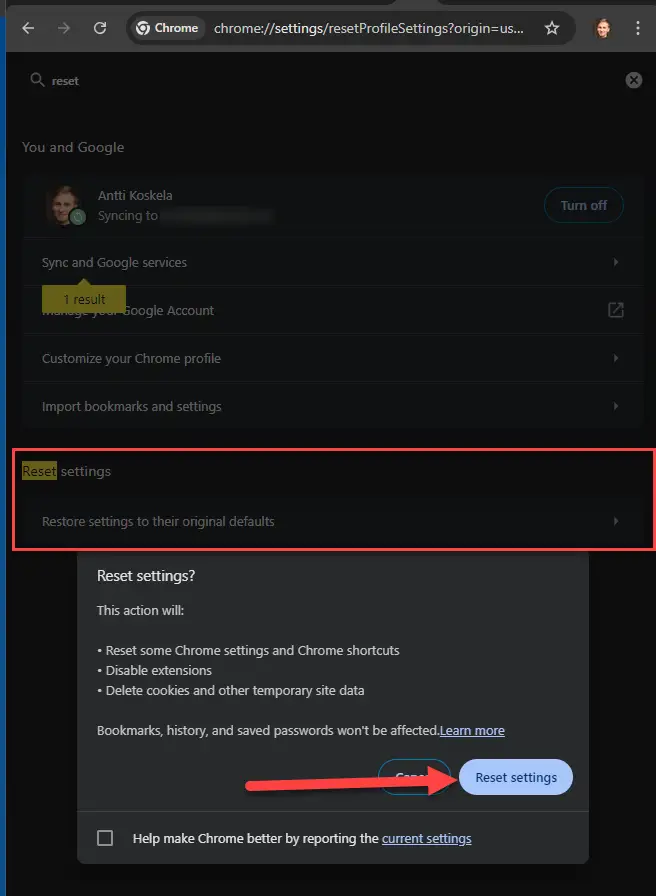 2. Reset your Google Chrome profile