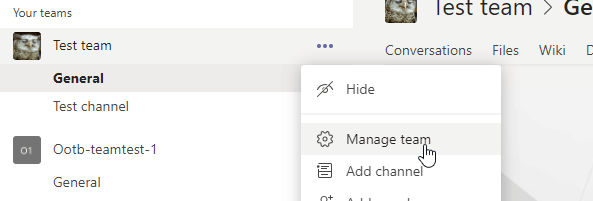 Then navigate to your team in Microsoft Teams, and select "Manage Team".
