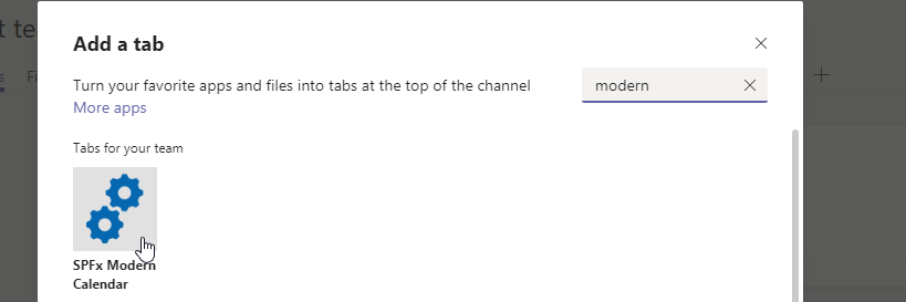First of all, let's use an existing Modern Calendar webpart, that we have on our tenant. Why? Because weirdly enough, Teams lacks a Calendar app for a team!