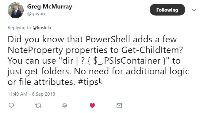Greg McMurray on Twitter about using dir | ? { $_.PSIsContainer }