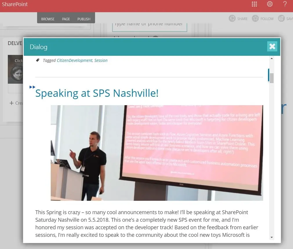 Showing a page from my website/blog in a pop-up on a Classic SharePoint site... It looks fairly good, and it's EASY!