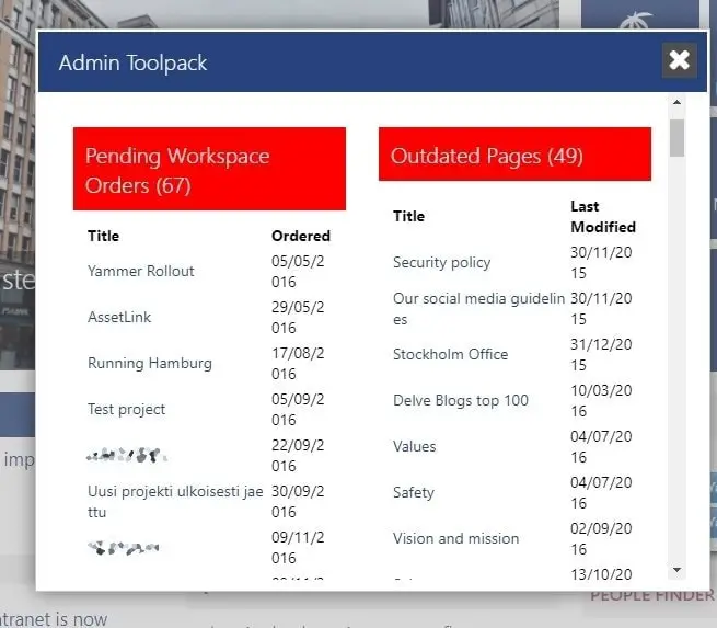 This is very useful for showing other SharePoint pages in the context of whatever page the user is currently browsing. For example, this could look something like this: