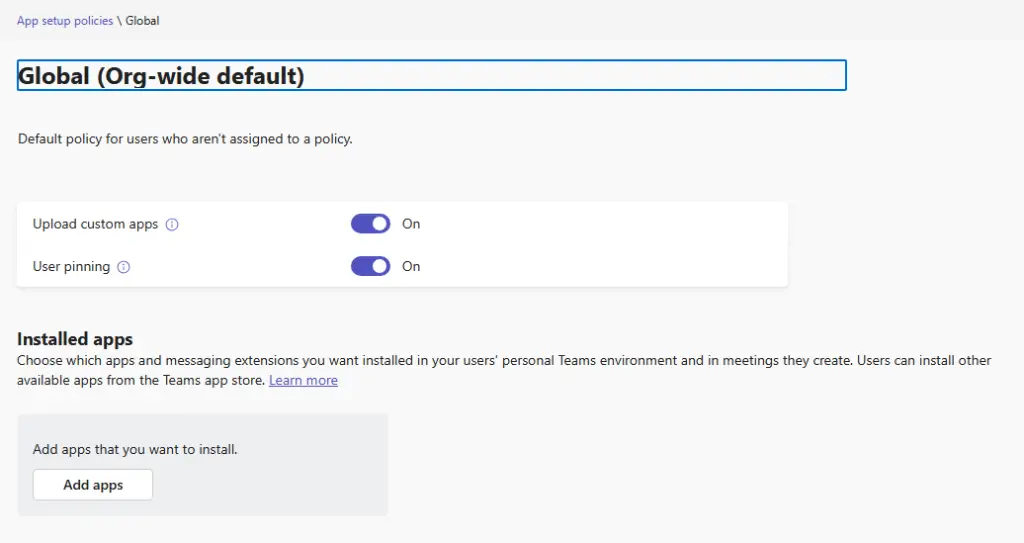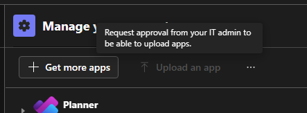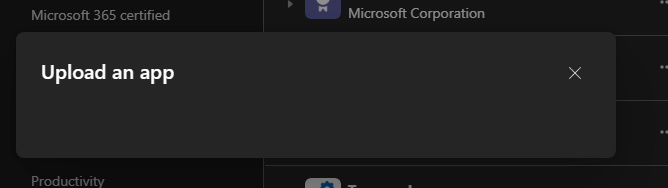 For some background, my tenants have sideloading (uploading custom Teams apps) enabled: