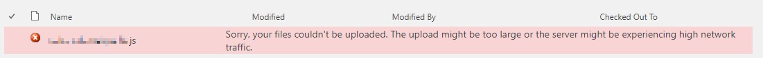 Solving "Sorry, your files couldn't be uploaded. The upload might be too large or the server might be experiencing high network traffic." in SharePoint