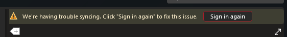 "Sync error. We are having trouble syncing. Click 'Sign in again' to fix the issue."
