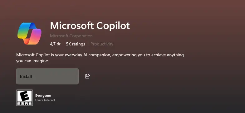 So we'll just reinstall Microsoft Copilot (Bing Chat) (Copilot) (New) by either running this in terminal: