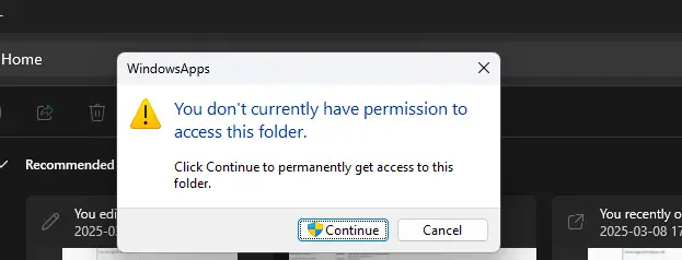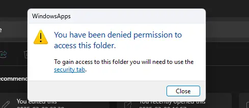And when trying to navigate to C:\Program Files\WindowsApps...