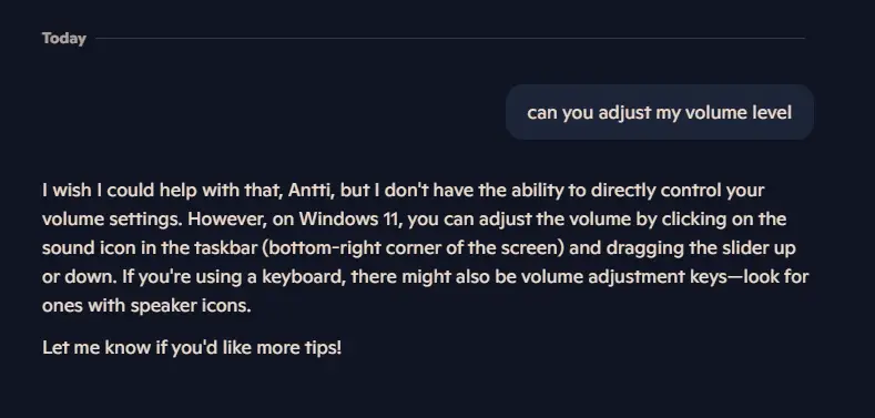 But hey! After reinstalling the app, I now have something called "CopilotNative.exe". That's a native Copilot app, right? So it should be able to use native features of my pc - my NPU, and control my Windows, right?