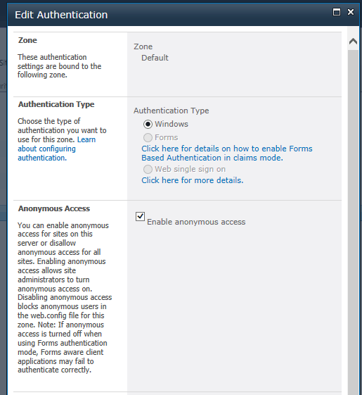 This article describes how to enable anonymous access for SharePoint Server 2010, 2013, 2016, and 2019 - the procedure is pretty much the same!