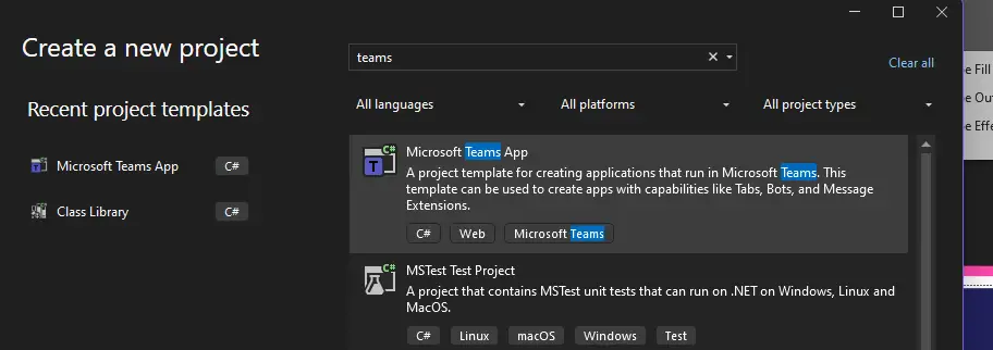 ... and if you have installed Teams Toolkit (Microsoft Teams development tools) for Visual Studio, of course :)