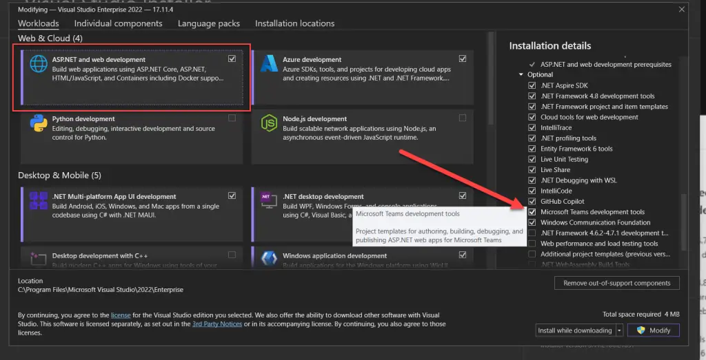 (this is where you find Teams Toolkit in Visual Studio installer!)