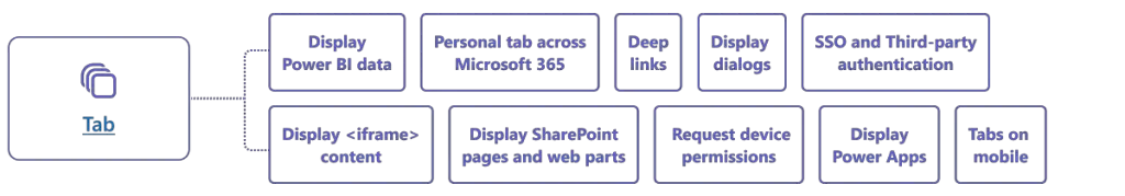 - Tabs are client-aware webpages embedded in Microsoft Teams, Outlook, and Microsoft 365