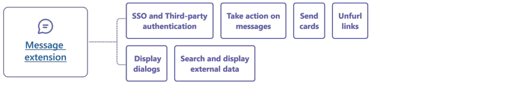 - Message Extensions are "shortcuts" for inserting app content or acting on a message without navigating away from the conversation.