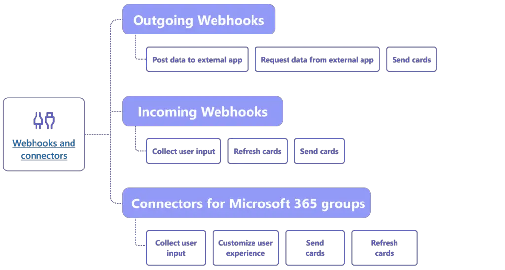 Outgoing Webhooks will cause a Bot to call external APIs and react to the responses in some way - perhaps by posting rich data as an Adaptive Card in its response