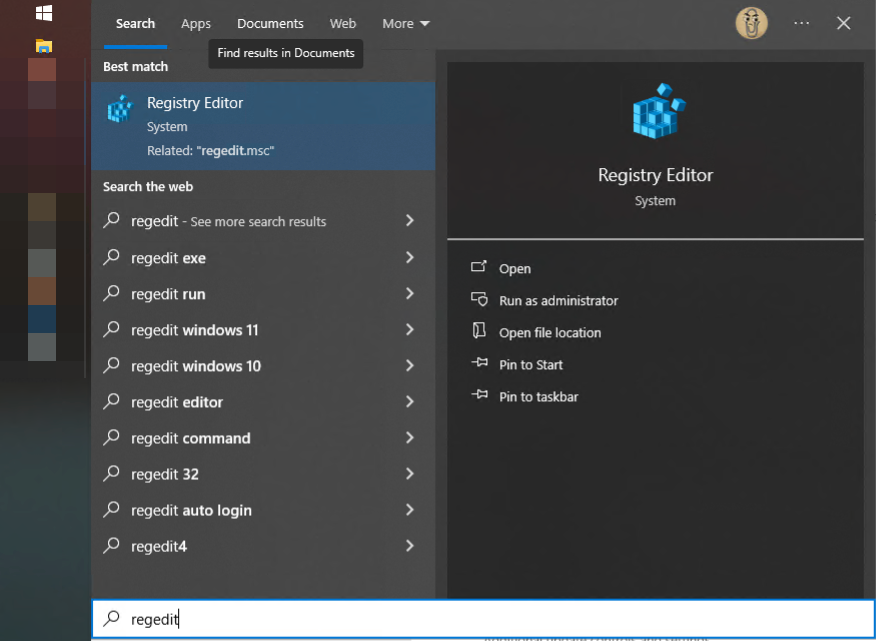 So, we'll use everyone's favorite tool, regedit.exe, to do the next steps.