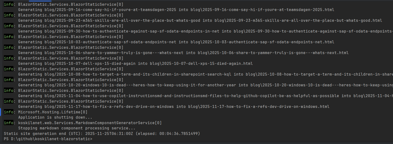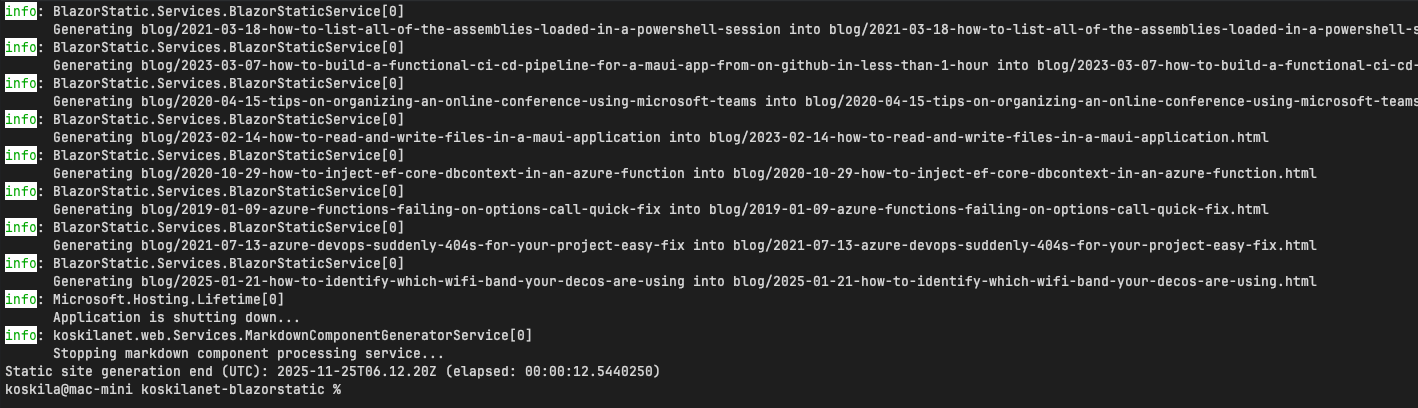 This build will generate around 600 pages based on my blog, built on Blazor Static.